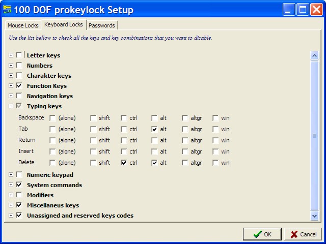 Pro-Key-Lock výkonná a snadno použitelná utilita, díky které lze uzamknout specifické klávesy a funkce myši. Je ideální k zabranění náhodnému stisknutí nežádoucí klávesy a tlačítka myši uživatelem.