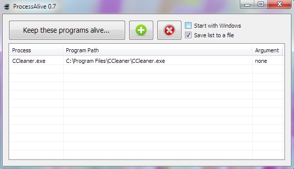 ProcessAlive je jednoduchý nástroj, který automaticky restartuje Vámi vybrané procesy, jakmile zjistí, že má dojit k jejich zastavení. To Vám zajistí, aby procesy, které používáte nebyly nedostupné, což je zvláště užitečné, pokud používáte webový server nebo hrajete MMORPG hry.