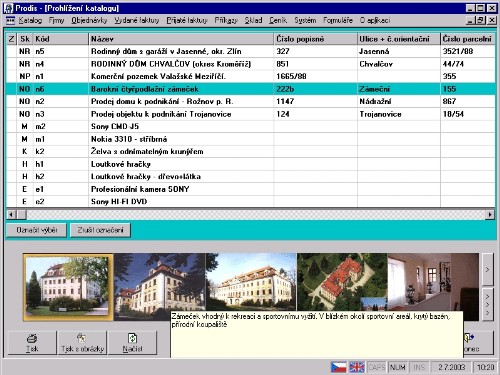 Informační systém PRODIS umožňuje velice jednoduše obsluhovat grafický katalog s nabízeným zbožím, který je přímo provázán na evidenci zboží, tvorbu faktur a objednávek. Katalog zboží, objednávky, faktury, ceník a skladová evidence jsou obohaceny o možnost zobrazení fotografií zboží. Jeho ovládání je velmi jednoduché a intuitivní. Systém je možno provozovat na lokálním počítači, nebo v počítačové síti.
