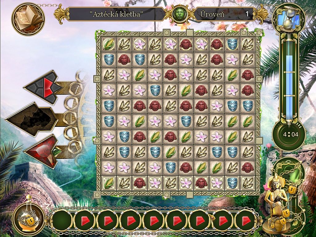 Jestliže svého muže chcete zachránit, musíte klenot opravit a navrátit je na posvátné místo v srdci aztécké říše. V této logické hře je vaším cílem v nelítostném časovém limitu spojit vždy 3 a více stejných symbolů v řadě. Za svůj postup dostáváte jako odměnu drahokamy, které vám poslouží k rekonstrukci poškozených klenotů. Musíte tedy nejenom myslet rychle, ale také se tak rychle rozhodovat. Vysvoboďte svého miláčka z osidel zla!