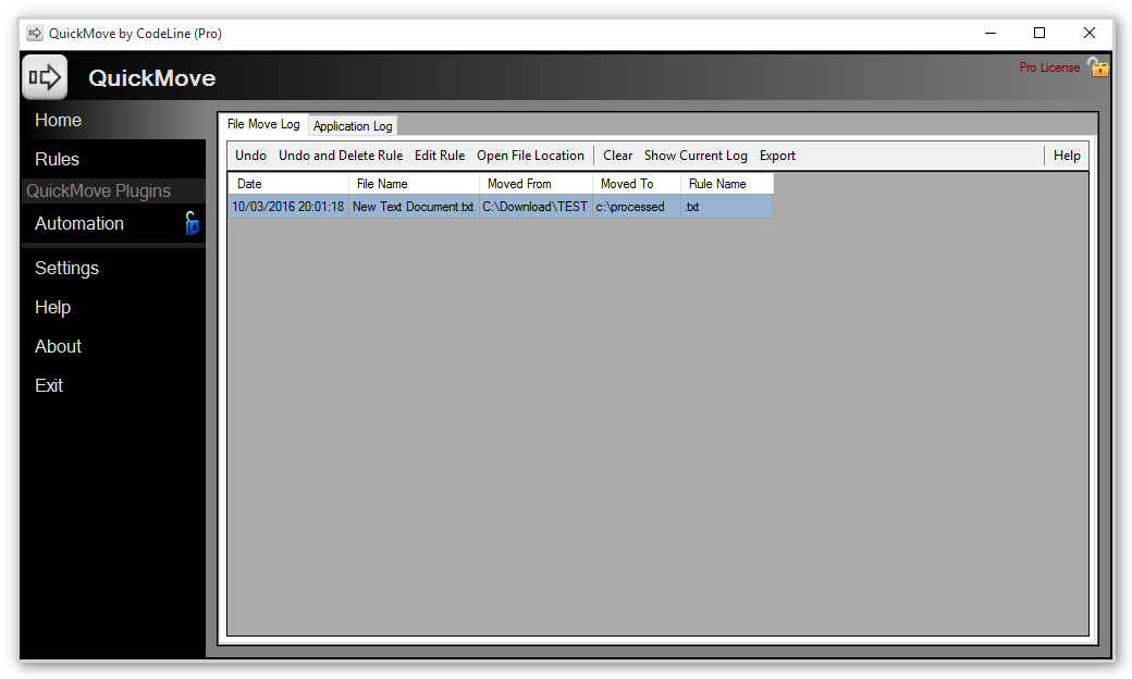 QuickMove je nástroj, který umožňuje vytvářet pravidla pro přesouvání souborů v rámci počítače. Pravidla vytvořená v doplňku QuickMove zahrnují například přesun souborů z jedné složky do jiné, nebo přesun určitých typů souborů (např. JPG) do určité složky. Na soubor stačí jen kliknout pravým tlačítkem myši a v kontextovém menu zvolit možnost QuickTime, nástroj uskuteční přesun souboru podle uživatelem nadefinovaných pravidel.