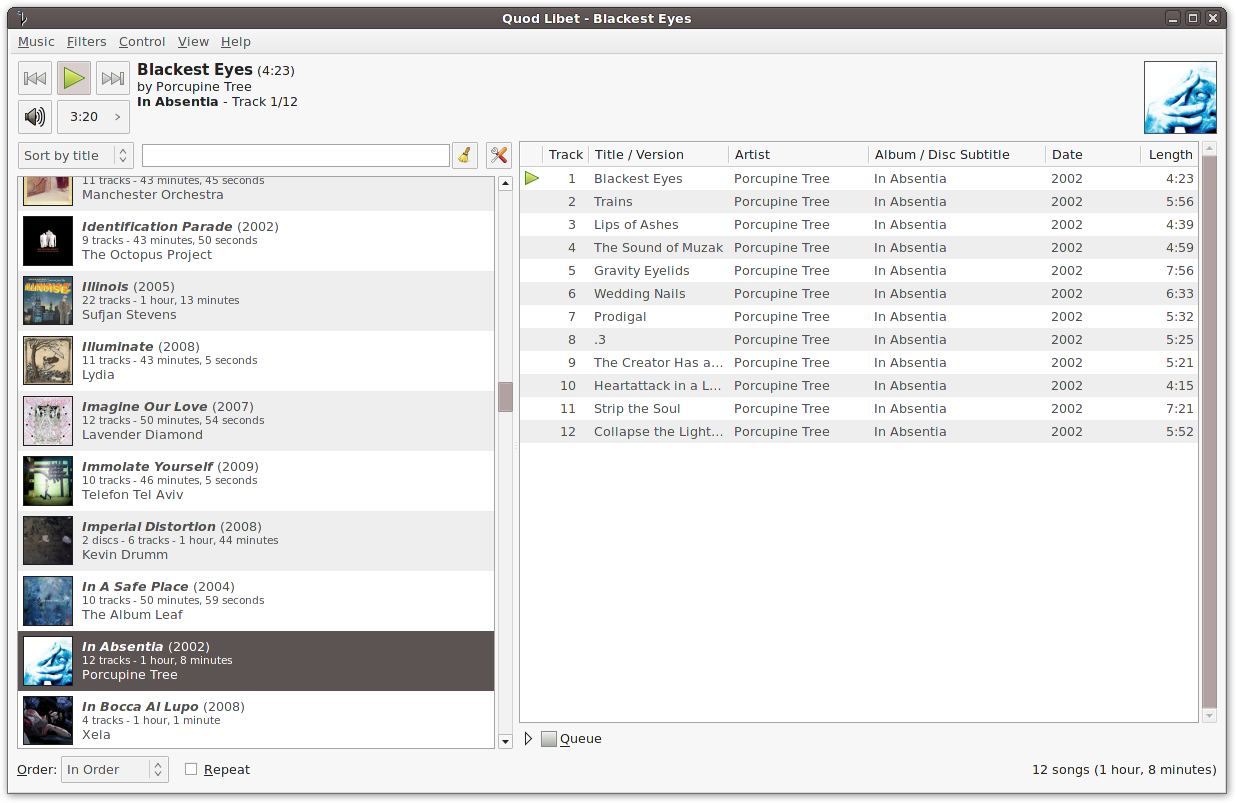 Quod Libet je audio přehrávač napsaný v "Pythonu", který byl navržen s intuitivním ovládáním Vaší hudební knihovny. Podporované formáty: MP3, Ogg Vorbis, Speex, Opus, FLAC, Musepack, MOD, XM, IT, WavPack, MPEG-4 AAC, WMA, MIDI, Monkey Audio