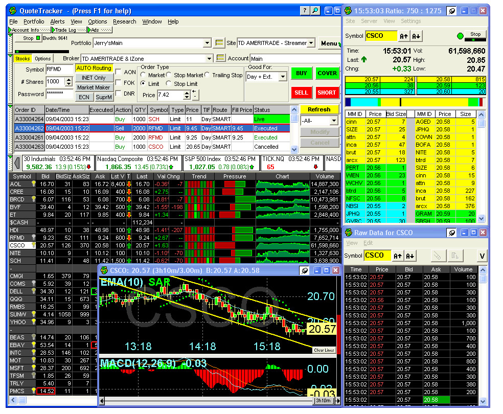 Sledování cen akcií v reálném čase. Aplikace zobrazuje burzu cenných papírů pomocí grafu.