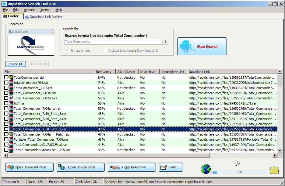 Rapidshare Search Tool je unikátní desktopový software, který vám umožní vyhledávat a stahovat sdílené soubory na webu s minimální námahou. Tento nástroj dokáže najít odkazy na sdílené soubory, prověřit zda je odkaz ještě „živý“ a umožní vám nalezený soubor stáhnout.
