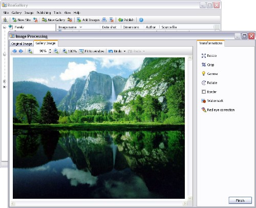 ReaGallery poskytuje různé foto editační funkce - obrázkové efekty, šablony, možnost vkládání vodoznaku, korekce červených očí, intuitivní možnosti pro správu a sdílení atd.