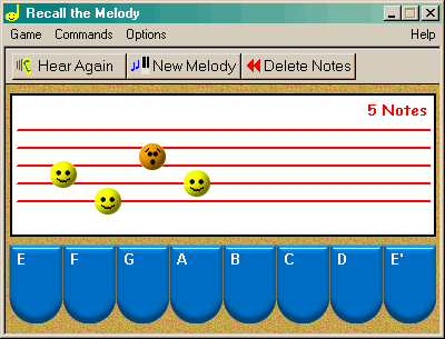 S tímto programem si můžete vyzkoušet, jak jste na tom s hudebním sluchem. Prográmek vám přehraje melodii, vašim úkolem bude tuto melodii zopakovat pomocí zápisu not. Správnost not se zobrazuje pomocí smajlíků.