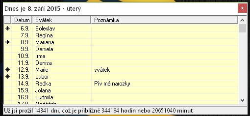 RememberDay je aplikace, která Vám pro nadcházející týden ukáže svátky lidí a vaše vlastní poznámky (narozeniny, výročí,...). Také vám řekne kolik dní, hodin a minut jste na světě, když si zadáte datum narození. Nastavte si to do spuštění Windows a nikdy na žádné narozky nezapomente.