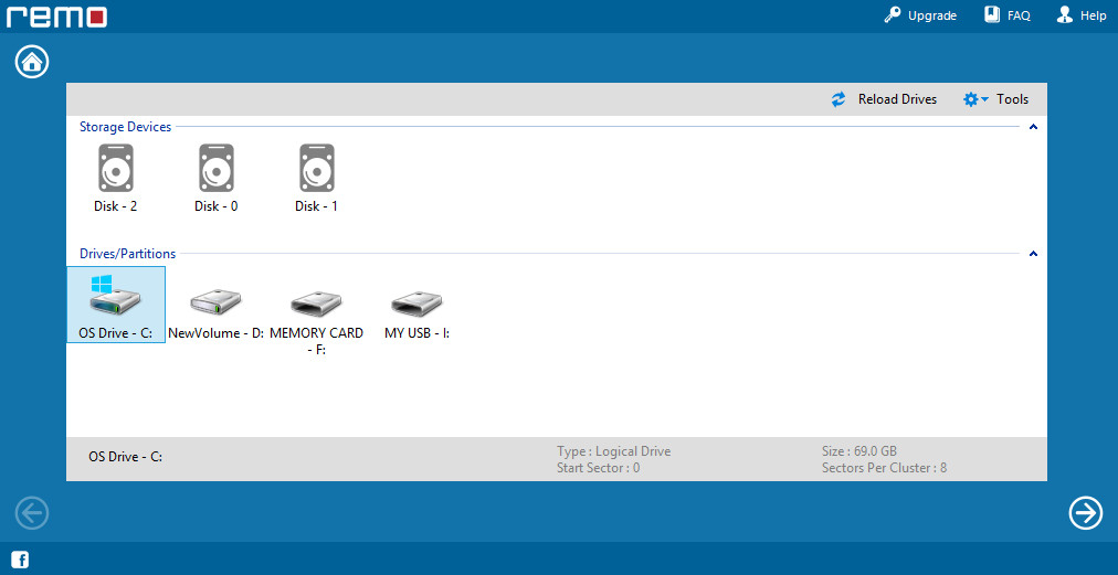 Zde jsou některé z funkcí Remo Recover Free Edition: