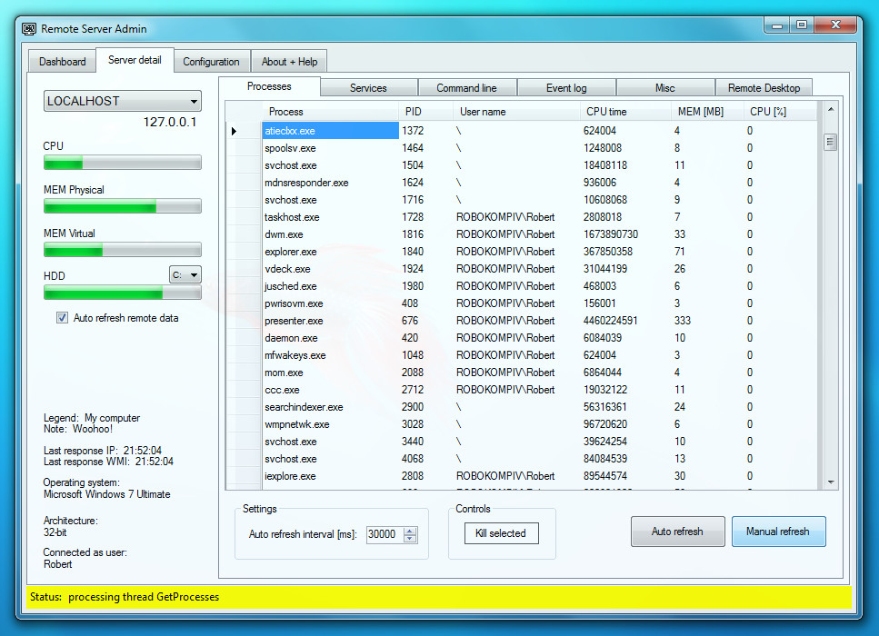Remote Server Admin je komplexní nástroj pro vzdálenou správu serverů. Umožňuje spravovat více serverů najednou a zároveň provádět detailní analýzu jednotlivých serverů. Program je jednoduchý na používání a nevyžaduje instalaci, takže je možné jej spustit i bez administrátorských práv.