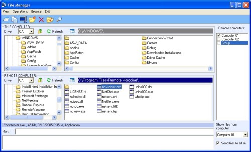 Remote Vaccine je určen pro vzdálené ovládání počítače hlavně pro správce a učitele škol, knihovny, vysoké školy, malé firmy a další. Je vhodná pro výuku na více počítačích. Nabízí tyto funkce: