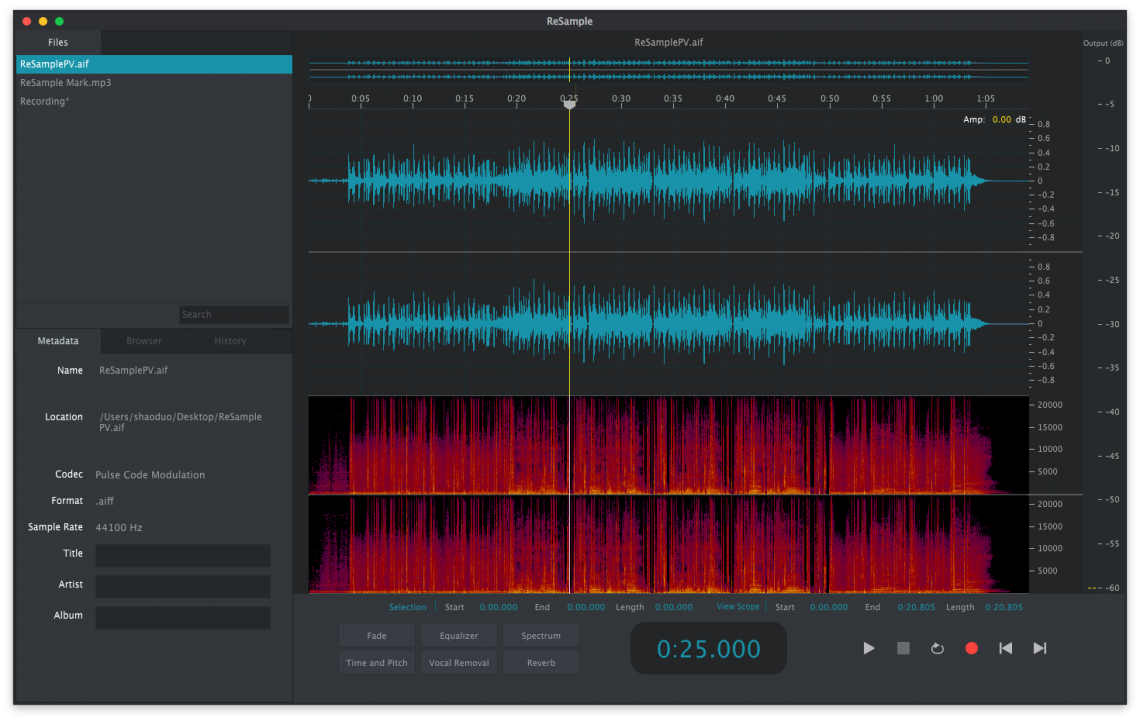 ReSample je nenáročný editor audio souborů s vizualizací zvukových vln, který má vestavěný ekvalizér a také sadu nástrojů, které vám pomůžou upravit hudební skladby. Zobrazuje celou zvukovou vlnu v responzivním podání, pomocí myši i klávesnice lze provádět editace. Poskytuje také funkci pro vyjmutí nebo extrakci hlasové složky.