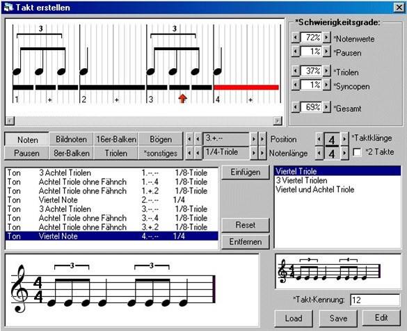 RhythmusTrainer je interaktivní výukový program pro zdokonalení schopnosti praktického čtení rytmu. Na obrazovce jsou zobrazeny takty, které máte hrát pomocí počítačové klávesnice nebo klaviatury piana. Své odpovědi můžete sledovat v reálném čase. Počítač analyzuje vaše reakce a mění strategii pro výběr dalšího taktu.
