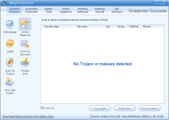 S Rising PC Doctor máte jistotu, že váš počítač je chráněn před nebezpečným softwarem a jinými útoky ze sítě. Nástroj disponuje sedmi klíčovými funkcemi, které zajistí kompletní ochranu vašeho počítače: