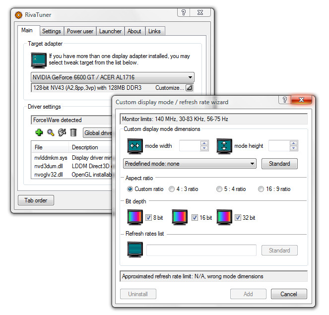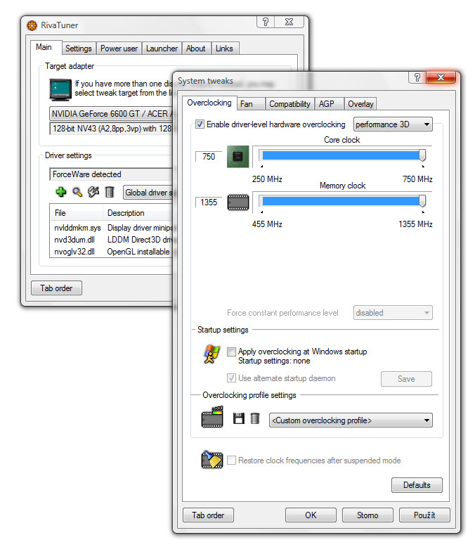 RivaTuner je nástroj pro úpravu grafických karet NVIDIA a ATI. Umožňuje vám přistupovat ke všem nezdokumentovaným vlastnostem ovladačů ForceWare a Catalyst a upravovat tak výkon a výkonnost svých grafických karet.
