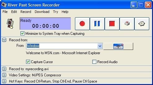 River Past Screen Recorder je software, se kterým můžete zaznamenávat aktivitu obrazovky a uložit ji jako AVI soubor na lokálním disku. Nastavení programu je poměrně snadné především díky přímému přístupu, který seskupuje nejdůležitější konfigurační volby přímo v hlavním okně.