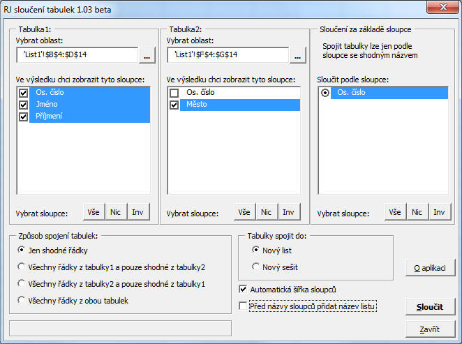 RJ Join table (RJ sloučení tabulek) je doplněk pro spojení dvou tabulek na základě shodného sloupce.
