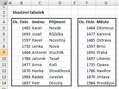 Tabulky mohou být umístěny ve stejném listu nebo v různých listech jednoho sešitu.