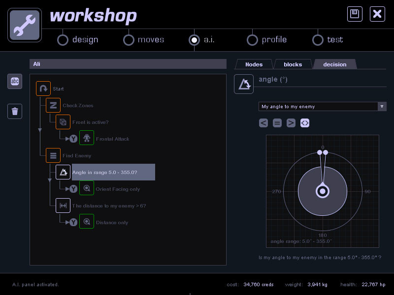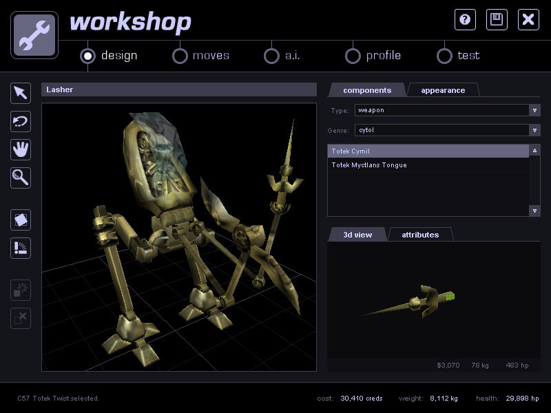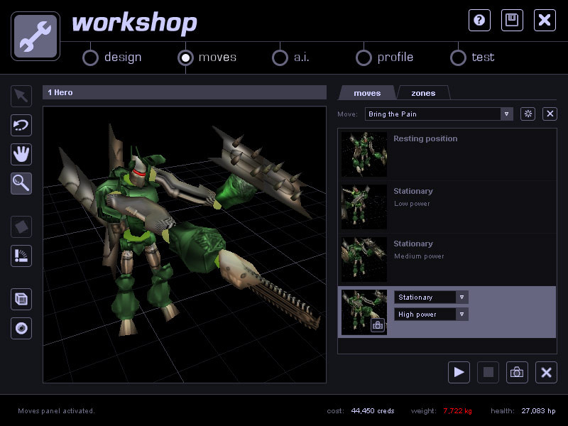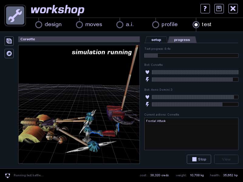 Hra začíná tím, že si vyberete ze široké škály komponentů, ze kterých si můžete postavit svého robota. Můžete si vybrat z různých tvarů, velikostí, materiálů a zbraní. Jakmile je váš robot postaven, je čas mu dát život. Pomocí jednoduchého rozhraní můžete robotovi nastavit pohyb, chování a umělou inteligenci. Poté můžete robota vycvičit na souboj s cvičnými roboty.