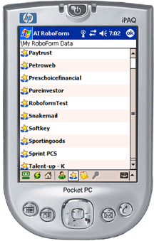 RoboForm pro Pocket PC dovoluje synchronizovat Karty, Totožnosti a Bezpečné poznámky RoboFormu mezi stolním počítačem a Pocket PC nebo jiným Windows CE-kompatibilním zařízením. Můžete si prohlížet synchronizované Karty, Totožnosti a bezpečné poznámky na Pocket PC. Plně funkční generátor hesel je také k dispozici.