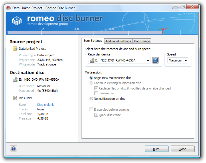 Romeo kombinací jednoduchého, ale profesionálního softwaru pro záznam, ripování, editování a vypalování CD a DVD disků.