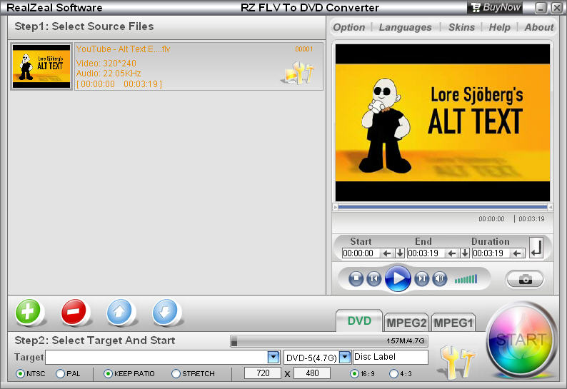 RZ FLV To DVD Converter je univerzální nástroj se kterým můžete sledovat všechny FLV videa na vašem televizoru díky konverzi flv souborů do DVD formátu, který pak můžete přehrávat na standartním DVD přehrávači.