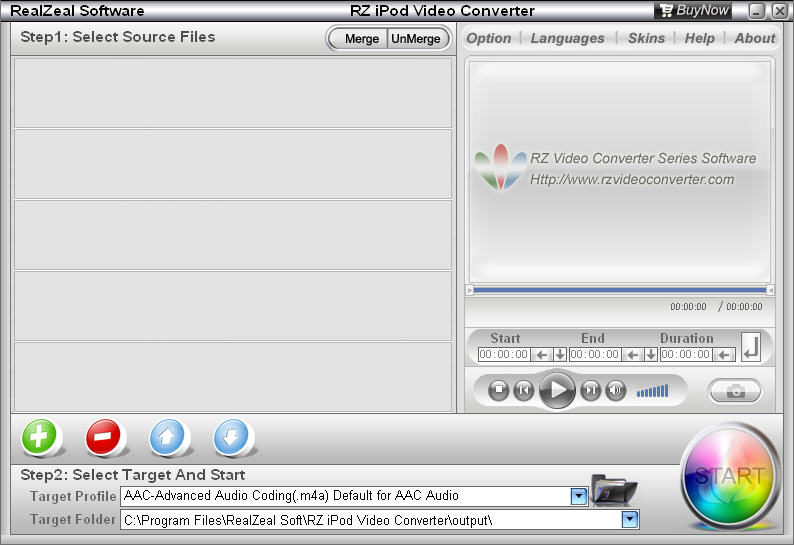 RZ iPod Converter je program, který je v jednoduchém uživatelském rozhraní a můžete tak snadno převést jakékoliv video nebo audio (včetně AVI, MP4 (MPEG-4), XviD, DivX, H.264, H.263, MPG (MPEG-1, MPEG-2), mkv , WMV, MOV, RM, RMVB, 3GP, FLV (Flash soubor, Youtube video soubor), ASF, OGG, VOB, AC3, AAC, MP3, AMR, WAV, WMA, atd) pro přehrávání na iPad, iPad Mini Air, iPad, iPhone, iPod, iPod nano, iPod classic, iPod touch, iPhone a Apple TV.