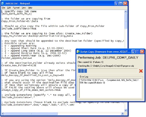 ScriptCopy je užitečný program určený pro hromadné kopírování souborů a v první řadě také pro automatické zálohování souborů na síť nebo na externí disk pomocí nastavení v INI souboru. Při vytváření dalších záloh nedochází k jejich přepisování, ale k přidávání.