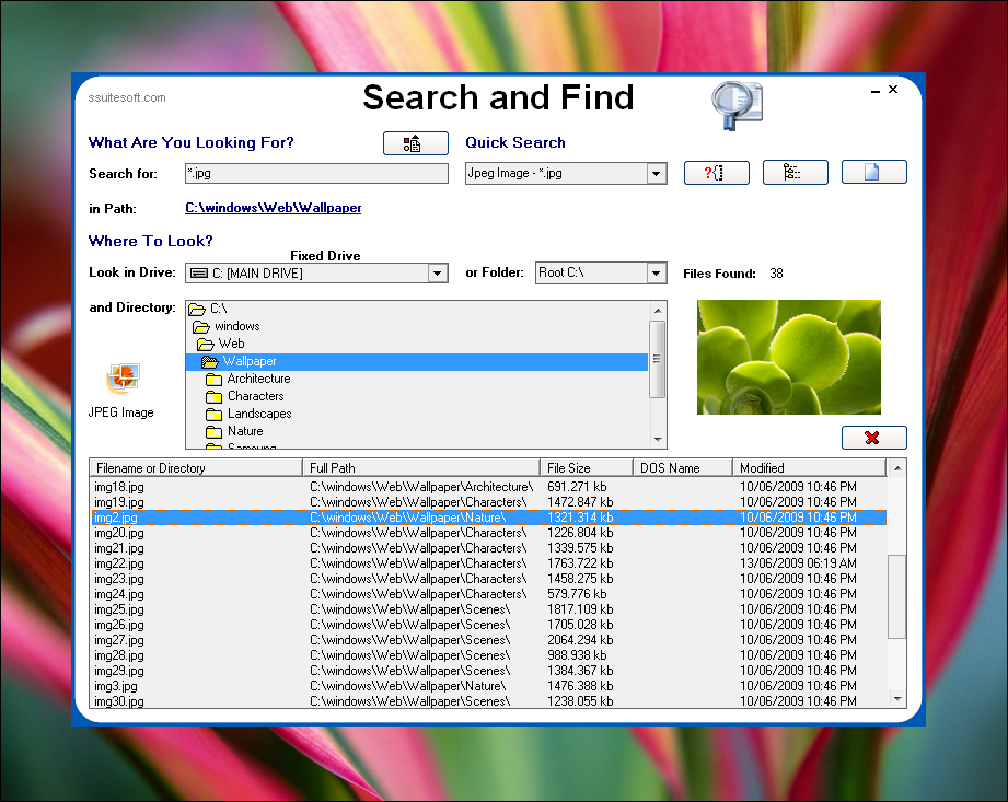 Search and Find je nástroj, který ulehčuje vyhledávání souborů v počítači. Vyhledává soubory na disku podle několika vstupních parametrů např. úplný nebo částečný název souboru, formát, konkrétní disková jednotka a adresář atd. Nástroj po provedení vyhledávání zobrazí odpovídající výsledky ve formě přehledné tabulky.