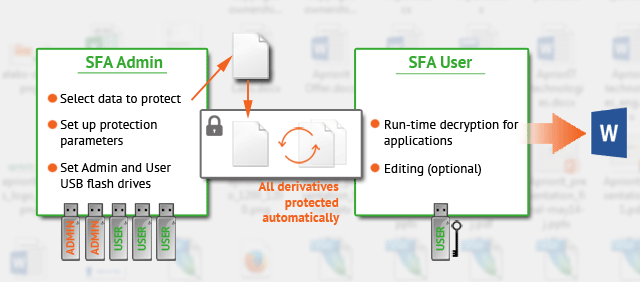Secure File Access je program, který používá systém technologie Apriorit. Stažený soubor obsahuje dvě aplikace - jednu pro SFA admin a jednu pro SFA uživatele. Každá z těchto aplikací lze snadno spustit bez instalace nebo potřebných oprávnění správce systému. SFA je zdarma bezpečnostní software pro ochranu Vaší práce s citlivými informacemi.