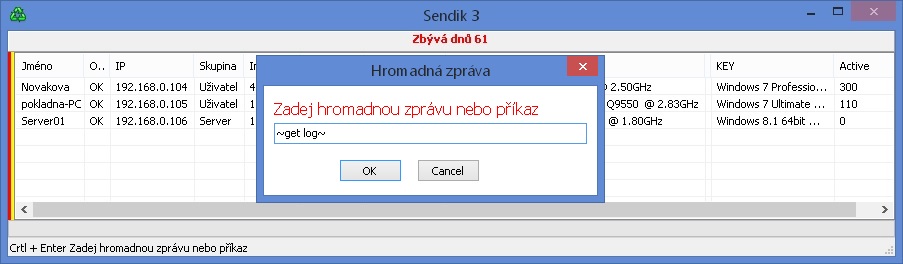 Sendik3 Demo je program pro systémové administrátory, učitele v počítačových učebnách nebo domácí a firemní uživatele, který slouží na posílání šifrovaných zpráv chráněných proti odposlechu na síti a diagnostiku uživatelských počítačů.