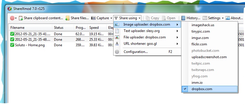 ShareXmod je program, který Vám umožní zachytit screenshoty obrazovky a uložit je do Vaší schránky, na pevný disk nebo je nahrát na více než 20 různých vzdálených míst. ShareXmod může zachytit snímky s různými tvary: zaoblený obdélník, elipsu, trojúhelník, diamant, polygon a také volnou ruku. Dokáže také nahrávat obrázky, textové soubory a všechny další různé typy souborů. Je schopen zachytit snímky s transparentností a stínem. Program také podporuje drag n drop a integraci do Windows Exploreru.