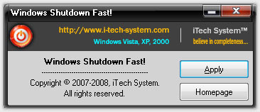 Shutdown Fast! upravuje systémová nastavení tak, aby se proces vypínání zkrátil na minimum. Stačí stisknout jediné tlačítko a program se postará o vše ostatní.