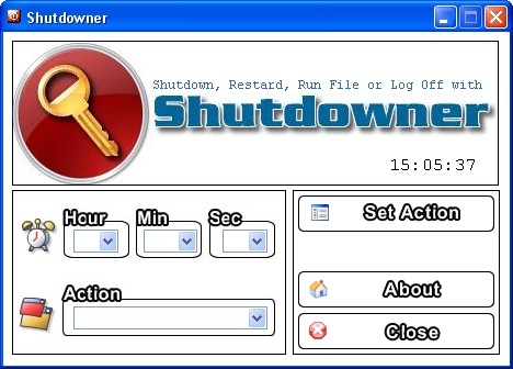 SHUTDOWNER je jednoduchý prográmek, který umožňuje vypnout, odhlásit se či restartovat váš počítač. Stačí nastavit čas, kdy chcete aby program daný úkon provedl. V nastavený čas lze také spustit i zvolený program.