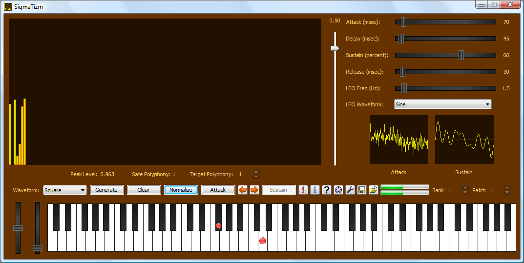 SigmaTizm má 128 harmonických oscilátorů, což umožňuje vytvářet poměrně složité zabarvení.