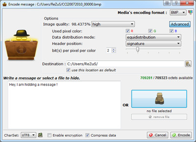 SilentEye je nástroj pro skrytí textu do souborů. Může být použit k ochraně citlivých informací před neoprávněným přístupem. SilentEye uchovává textové informace v obrazových nebo zvukových souborech. Cílové soubory mohou být ve formátech JPEG, MBP nebo WAVE. SilentEye také umožňuje šifrovat data pomocí šifrovacích algoritmů AES128 nebo AES256. Zvukové nebo obrazové soubory lze snadno přetáhnout ze zdrojového adresáře do prostředí aplikace. Zpětný proces je také k dispozici, který vám umožní získat zakódované textové informace.