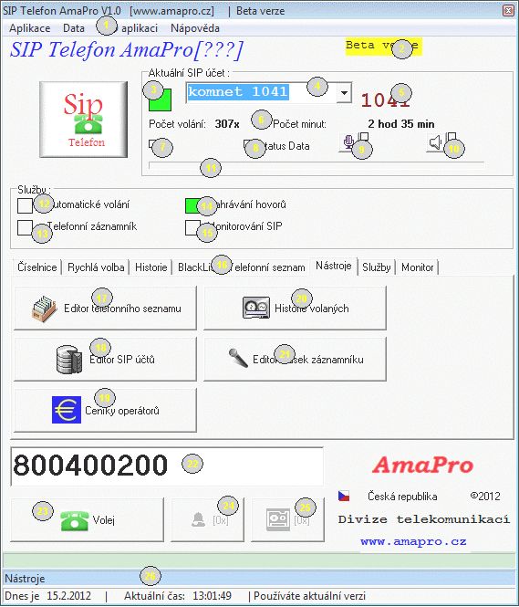 SIP Telefon AmaPro je softwarový klient určený pro internetovou telefonní komunikaci. Aplikace je založena výhradně na protokolu SIP a umožňuje připojení ke většině VoIP operátorů používající veřejné telefonní číslo. Klient umožňuje evidovat více SIP účtů, které lze jednoduše a velmi rychle přepínat. Integrovaný telefonní seznam je společný pro všechny SIP účty. Dle výhodného tarifu lze uskutečnit levnější telefonní hovor. Aplikace využívá i soubory tarifních schémat, které umožňují vypočítávat cenu i během hovoru. Vlastní telefonní hovor lze nahrávat a později opět přehrát.