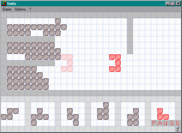 SIXTIS je varianta tetris, která nabízí různými módy. Lze nastavit směr gravitační síly, tzn. směr kde budou kostičky padat a jejich tvar. Můžete použít předdefinované nastavení nebo si zvolit vlastní. Hra nabízí několik úrovní.