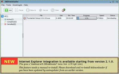 SKDownloader je akcelerátor pro stahování z internetu určen pro platformy Linux a Windows. Je založen na Javě.