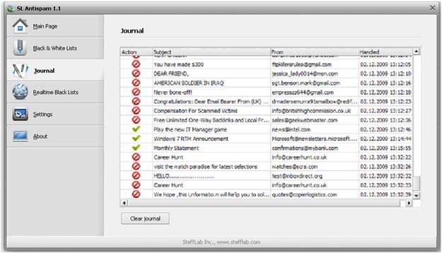 Program navíc umožňuje sledovat historii všech příchozích zpráv, včetně toho, zda byly klasifikovány jako spam nebo ne.