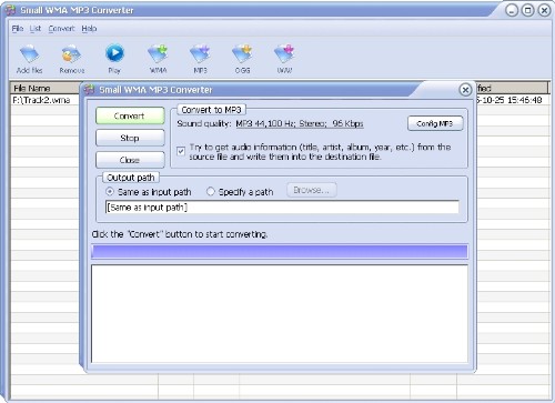 Small WMA MP3 Converter je silný nástroj pro konvertování audio souborů. Podporuje převod mezi formáty: WMA, MP3, OGG a WAV.