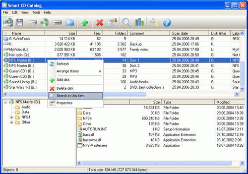 Smart CD Catalog slouží pro katalogizaci a správu vašich CD a DVD, dokumentů, MP3 hudebních souborů, fotografií a video sbírek. Má snadné ovládání a příjemné uživatelské prostředí. Díky tomuto programu rychle vyhledáte potřebné informace a zjistíte obsah bez vložení disku do mechaniky.