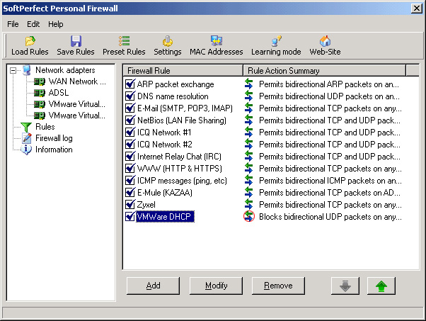 SoftPerfect Personal Firewall je freewarový nástroj sloužící k ochraně vašeho počítače před útoky z internetu nebo před napadením přes místní síťovou oblast. SoftPerfect Personal Firewall nabízí přízpůsobitelné použití nastavitelné uživatelem. Podporuje filtrování paketů a tvorbu pravidel pro protokoly nezaložené na IP, jako např. ARP.