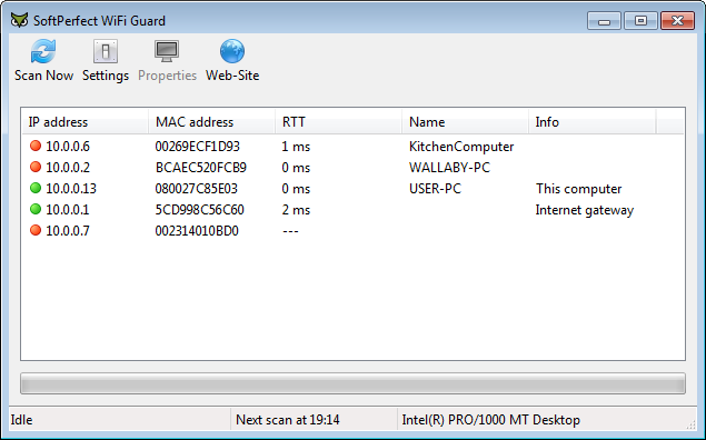 SoftPerfect WiFi Guard je program pro sledování a hlídání vaší Wi-Fi sítě. Jednoduše zjišťuje, zda-li se k vaší síti připojil neznámý, neschválený počítač, upozorní v případě nepovoleného přístupu a uchrání Vás tak před zneužitím vašeho připojení, či nahlížení do soukromých informací.