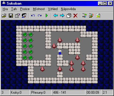 V této logické hře musíte dostrkat bedny na označená místa. Hra obsahuje více než 3000 místností. Můžete si sami vytvářet další místnosti a navíc můžete změnit vzhled. Všechny vaše řešení se automaticky ukládají na disk. Můžete si samozřejmě uložit i právě rozehrané pozice. Hlavní výhodou tohoto programu je snadné ovládání klávesnicí i myší, což může vaši hru oproti jiným Sokobanům dvakrát zrychlit.
