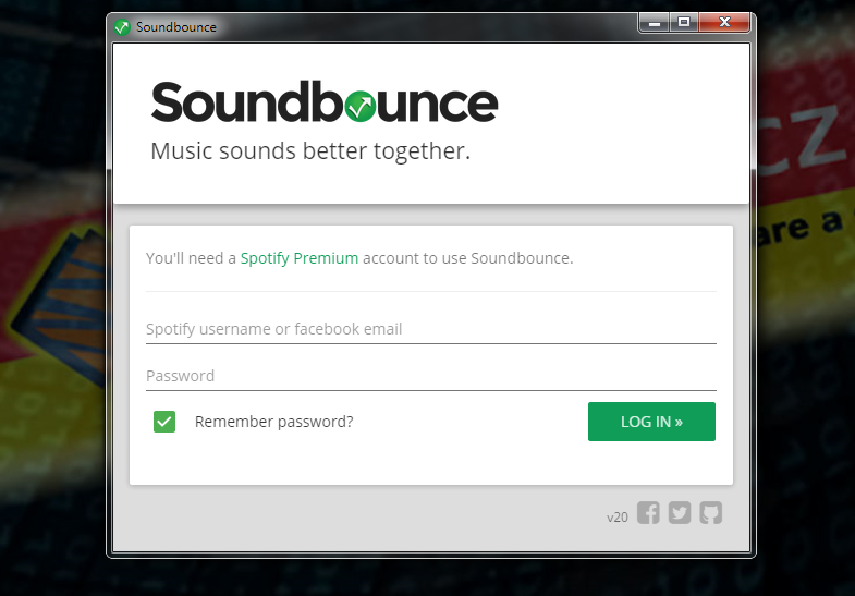 Soundbounce je přehrávač muziky pro všechny uživatele prémiové služby Spotify. Tito prémioví uživatelé zde mají prostor pro vytvoření svého playlistu. Program Vám umožní diskuzi s dalšími uživateli a možnost hlasování.