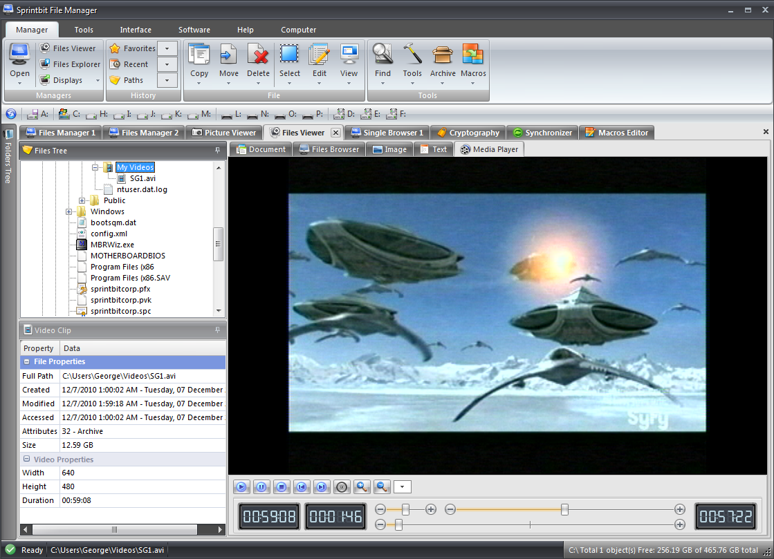 Obsahuje funkce: zapisování CD-DVD, prohlížení souborů, Zip archivace, prohlížení obrázků, přejmenovávání souborů, synchronizování složek a další. Kromě těchto funkcí používá klasické operace se soubory: přesouvání, kopírování, smazání, tvorba složek, spuštění souborů, a provádí mnoho dalších příkazů.