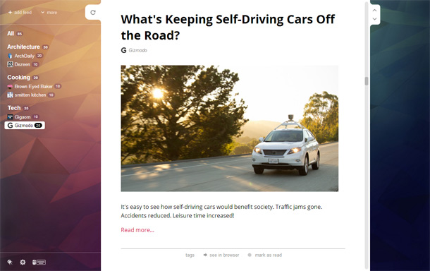 Sputnik je praktická čtečka RSS kanálů s přehledným uživatelským rozhraním a intuitivním ovládáním. Jednotlivé kanály lze přehledně třídit do vlastních kategorií. Čtečku není nutné instalovat.