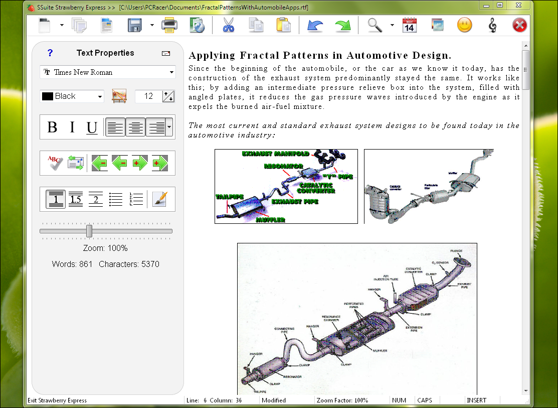 SSuite QT Writer Express je kompletní a výkonné softwarové řešení pro vytváření, editaci a prohlížení různých typů dokumentů. Řada dostupných funkcí vám umožní kontrolu nad formátování textu, stran a profilem dokumentů. Dokumenty můžete otevřít a uložit v různých standardních formátech PDF, RTF, doc, txt, a také formát pro prezentace SSP. Samozřejmostí je vložení speciálních znaků, emocionálních ikon, obrázků apod.