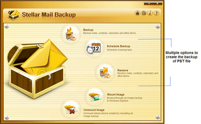 Stellar Mail Backup je kompletní nástroj pro zálohování všech vašich e-mailových zpráv, kontaktů, úkolů, poznámek, záznamů kalendáře, a dalších dat.