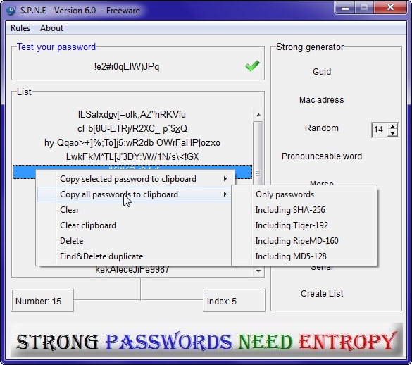 Strong Passwords Need Entropy je šikovná a lehká aplikace, kterou můžete použít k určení síly hesla. Program analyzuje heslo a zobrazí jeho délku, charakter, frekvenci a počet symbolů, malých a velkých písmen a číslic. Na základě těchto informací se počítá heslo entropii, počet pokusů potřebných pro to najít a čas rozlousknout heslo.